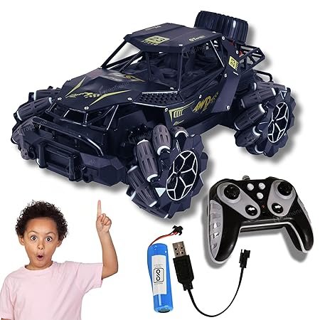 - 🚙[BEST 4 WD RC CAR] : Move Forward/Backward, Turn Left/Right,4 Wheel Drive , Spraying (Simulating smoke exhausting), With Lights.NOTE – 2.4Ghz Remote Controlled Smoke Car needs to be charged before use for at least 60 minutes.