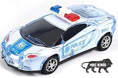 Uyir Mei Friction Powered Police Car with Lights Music Super Speed Colourful Dazzling Lights and Sound Siren Pullback Cop Vehicle Toy .