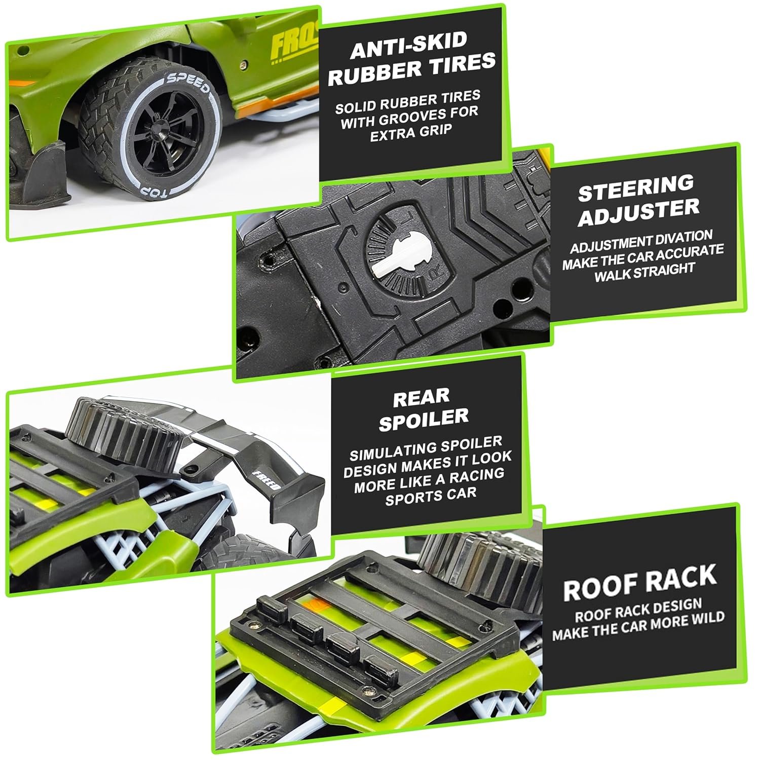 • 🎮【Ultrafast 2.4 GHz Wavelength Remote Control】:- The Remote and car are configured on 2.4 GHz frequency band that uses spread spectrum technology enhancing the anti-interference ability so that you can have uninterrupted fun. The reaction speed of the remote control is faster than any other regular remote controls.